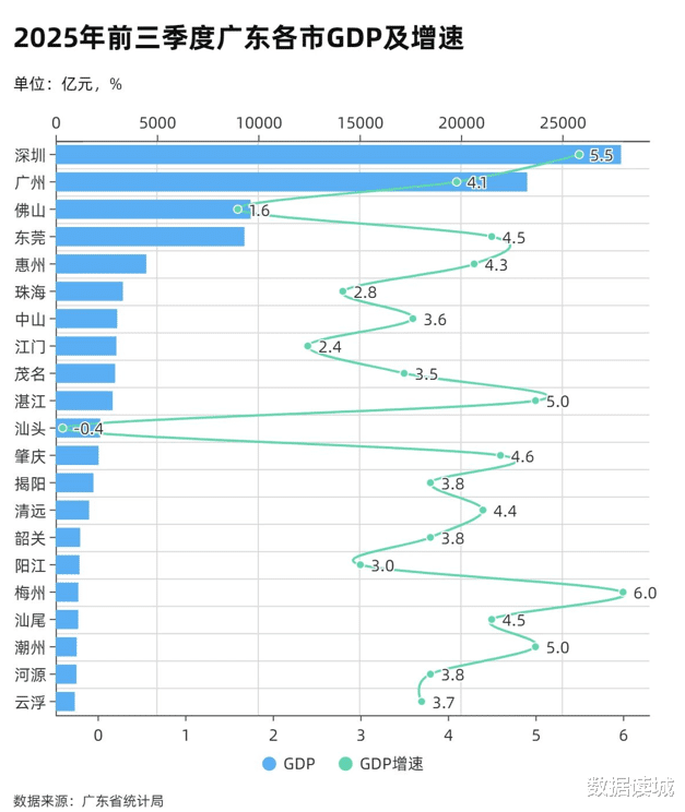 珠三角地区可以和长三角地区的发展掰手腕。广东经济正在打破“珠三角一家独大”的旧印象,2025年前三季度,梅州以6.0%的增速领跑全省,湛江、潮州等多地增速高于全省4.1%的平均水平,粤东西北不再是追随者,而是成为倍增目标的重要增量来源。
